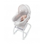 Son couffin adorable se verrouille solidement sur son support pour le maintenir en place en toute sécurité, un bouton vert s'allume pour vous assurer que le berceau est correctement verrouillé. Le couffin se dégage facilement du support et permet de jouer de la musique douce, des sons et mélodies de la nature relaxantes et des vibrations apaisantes pour aider votre bébé à s'endormir. Une douce veilleuse s'ajoute aux autres fonctionnalités pour permettre aux parents de garder un œil sur leur petit ange endormi. Le support est équipé de roues qui permettent de déplacer le lit facilement et d'un panier de rangement facile à atteindre pour y ranger des couvertures et des fournitures supplémentaires.
